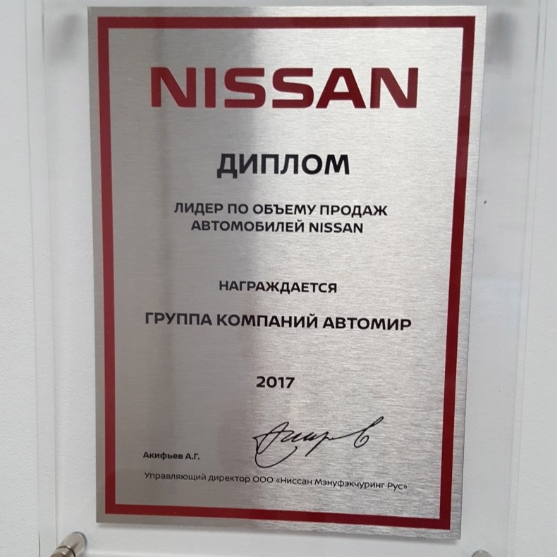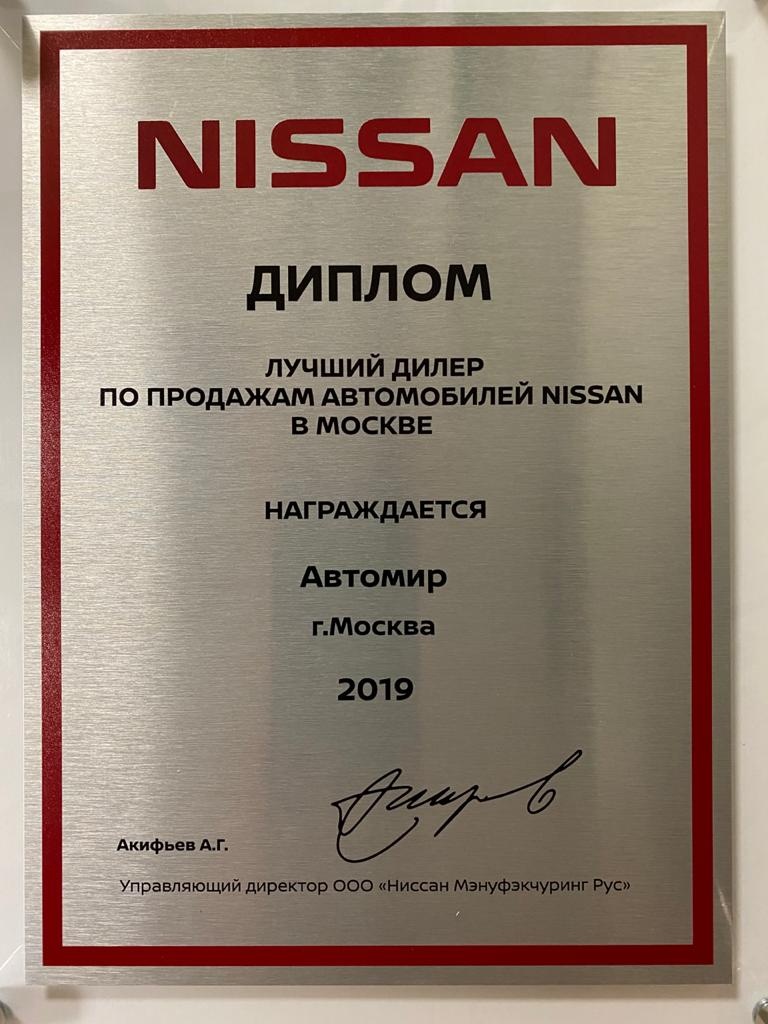АВТОМИР ПРИЗНАН ЛУЧШИМ ДИЛЕРОМ ПО ПРОДАЖАМ АВТОМОБИЛЕЙ NISSAN В 2019 ГОДУ В МОСКВЕ!
